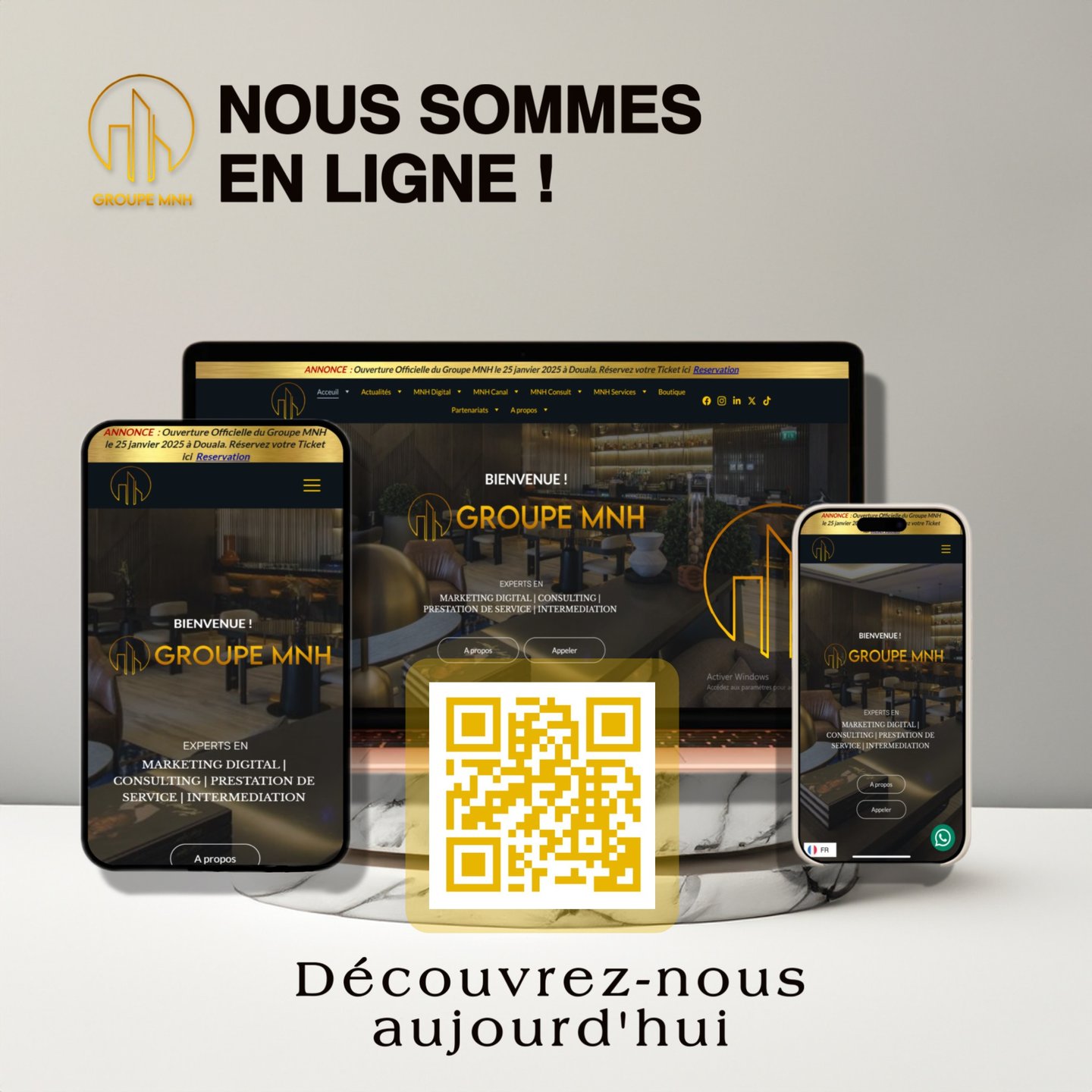 Contactez le Groupe MNH pour travailler avec des experts en marketing digital, consulting, intermediation et prestation de service au Cameroun. Nous sommes là pour vous accompagner.