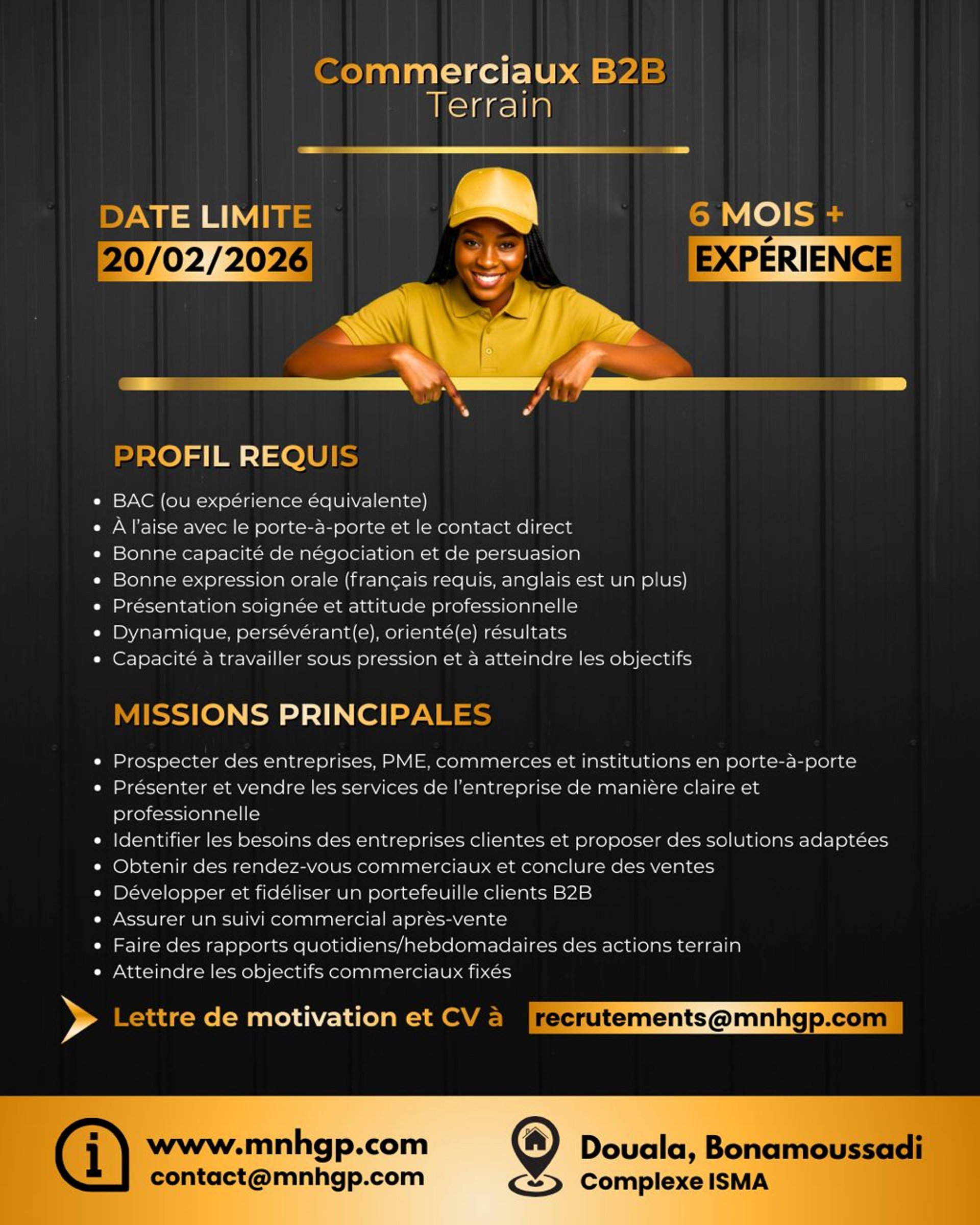 • Expérience en vente terrain ou en prospection B2B appréciée